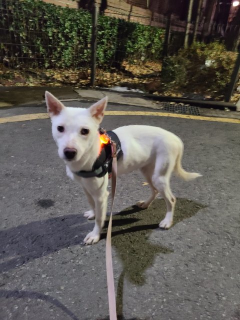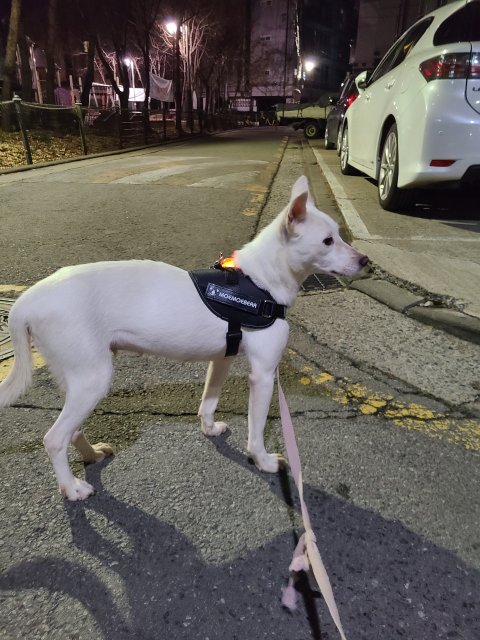 상기 지역 근처 지나가실 때, 흰색 진도믹스 (10kg, 진돗개보다 작아요) 목줄, 하네스 미착용, 젖이 약간 불어있음