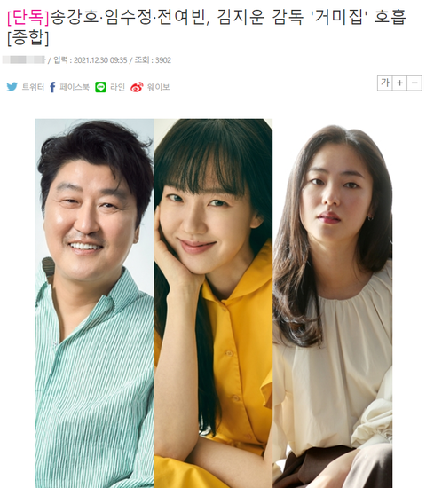 김지운 감독의 영화 '거미집' 출연한다고 함