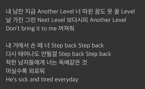 아니 가사가 저런거면 노래소개를 왜이렇게..세계 모든 여성들에게 내 남친 건들지말고 꺼지라는걸 알리고 싶었던건가..남친 누군지도모르고 관심도없는데 졸라 머쓱하네;;