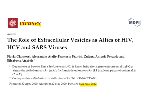 여기서 그들은 에이즈 바이러스, 사스, 그리고 C형 간염이라고 알려진 것과 세포 외 소포와의 관계를 조사하였다.