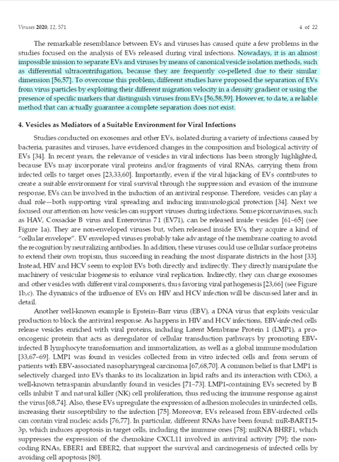 그들은 소위 바이러스라는 것과 세포 외 소포는 너무 똑같아서 이 둘은 구별도 분리도 안 된다고 하였다.