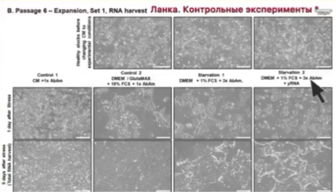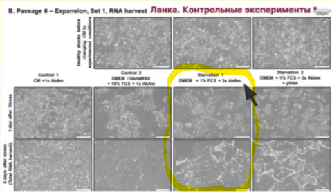 이 세 번째 그룹은 바이러스 학자들이 하는 세포 배양과 완전히 동일한 것으로, 영양공급은 거의 절반으로 줄였고, 송아지 태아 혈청 농도도 기존의 10%에서 1%로 줄였으며, 항생제 투여도 기존 1회에서 3회로 늘렸다.