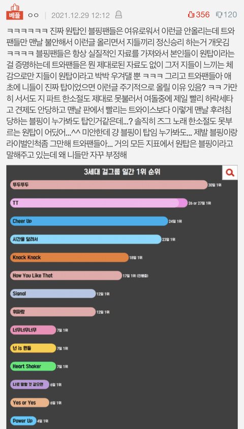 -추천조작질 원탑 블핑팬분들 그동안 방탄 트와 레벨 에스파 까질할떄 추천조작 한것처럼 안봐도 추천조작질로 베댓 조작할거 뻔함 ㅎㅎ-