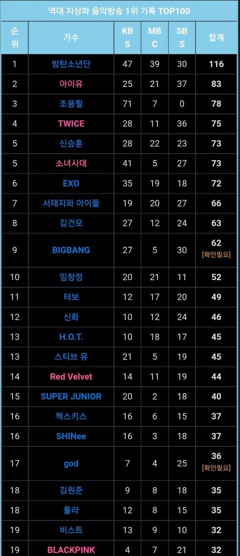 트와 75회 블핑 32회 그냥 더블스코어네?ㅋㅋㅋㅋ