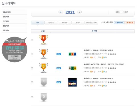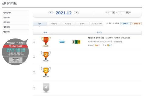 신나라 12월 월간차트 1위 에이티즈, 연간차트 2,3,4위 에이티즈