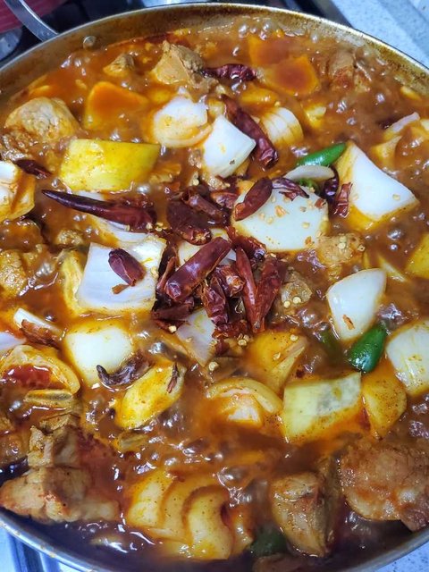아주 땀뻘뻘나는게 땡겨서 돼지갈비한팩사와서 보글보글해봅니다. 청양고춧가루도넣고 베트남고추 청양고추까지 넣었더니 맴맴입니다. 가끔 이렇게먹음 먼가 개운한느낌 마지막 볶음밥까지 배부르게~