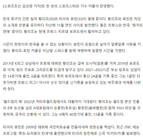 [단독]황의조 티아라 효민, 핑크빛 열애