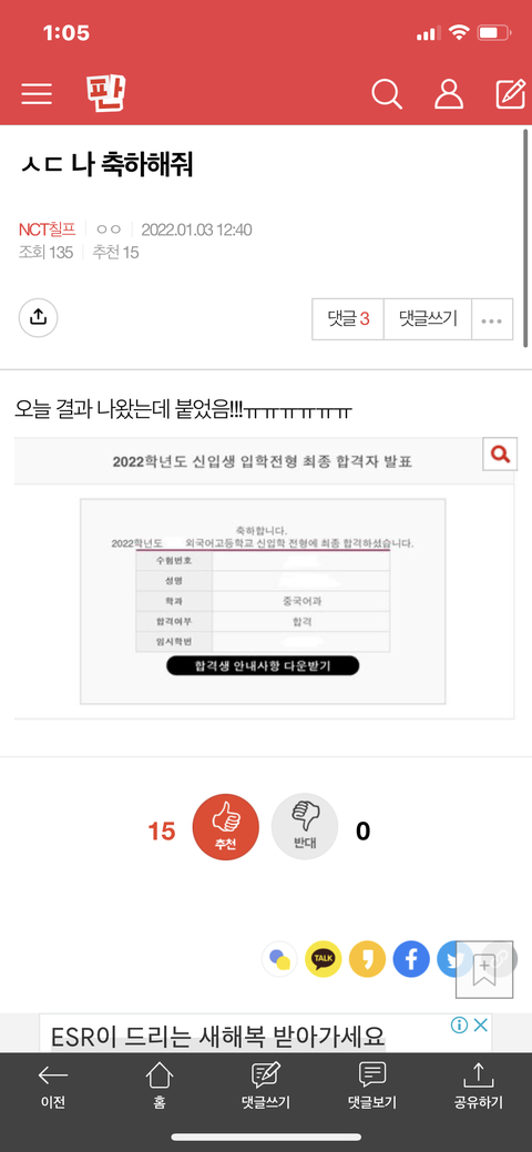 축하한다!! 난 3학년이야 ㅎㅎ