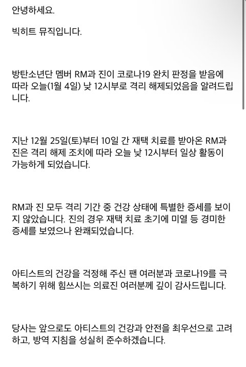 나머지 둘도 완치 격리해제ㅠㅠㅠㅠㅠㅠㅠ