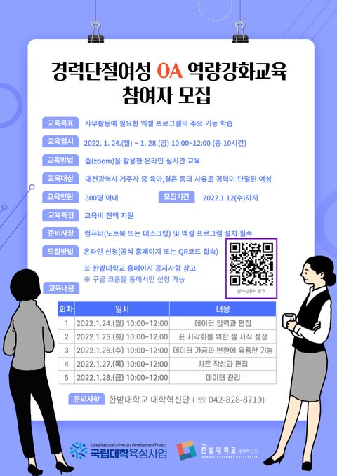 [한밭대] 경력단절여성 OA 역량강화교육 참여자 모집