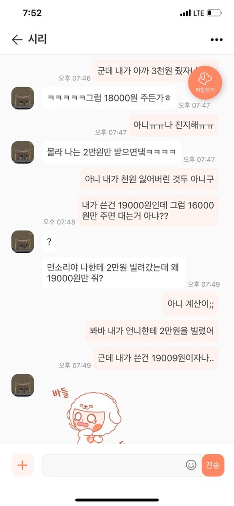 7. 그럼 내가 갚아야 할 돈이 17000원인데, 거기에 내 버스비 더하면 19000원임....