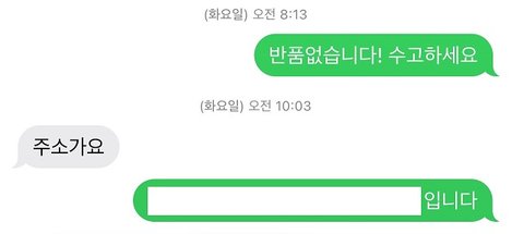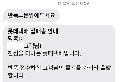 > 반품하면 송장도 두고가던데 송장도 없기도했고 이미 아침에 문자로 반품할거 없다고 다 얘기해둬서 (주소 어디냐고도 물어보셨으니까 읽었다고 생각함) 그럴리 없을거라고 생각했지만 아무리 봐도 택배가 없어서 진짜 혹시나 해서 물어봄..