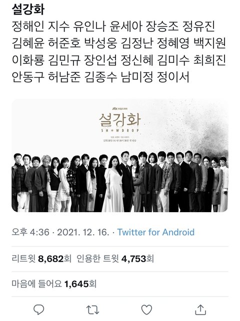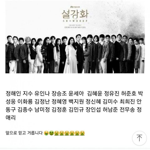 지금 상황에 징그러운건 설강화 욕한 사람들이 아니라 사람이 죽었는데 그걸 이용해서 드라마 쉴드치려는 정신나간 쉴더들인듯.. 소름끼치네 여돌팬임?