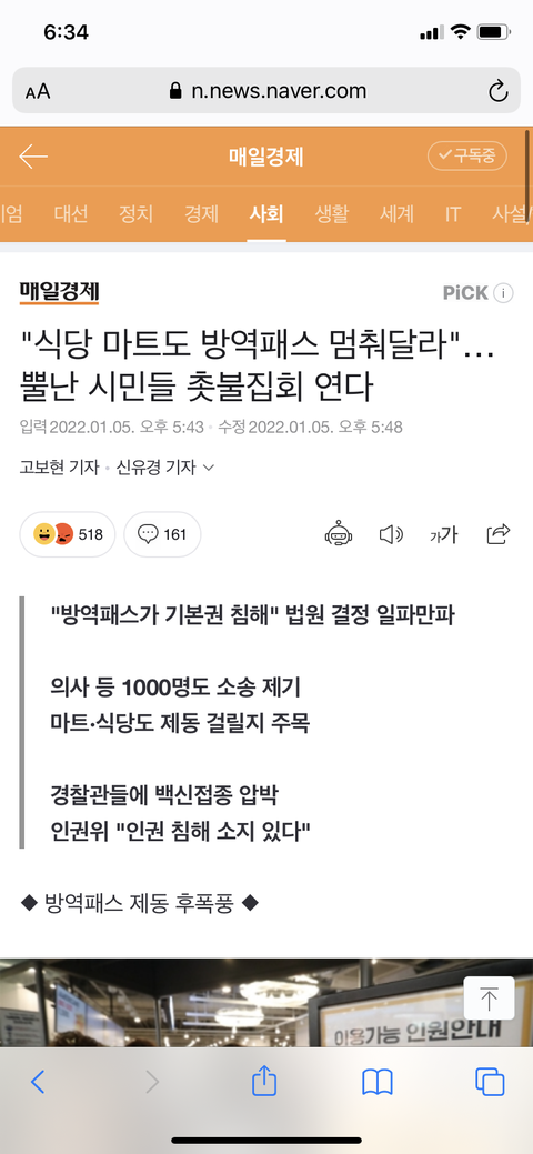 혹시라도 마트는 풀어준다는 말에 절~~ 대 속으면 안됨 백신패스 자체를 없애야 해