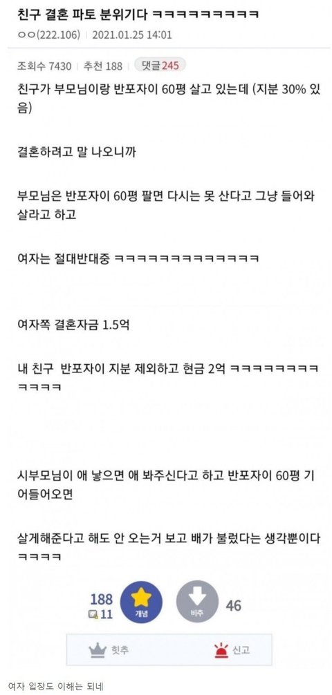 반포자이 60평 시부모가 들어오라는데
