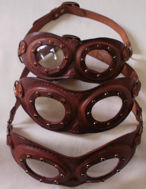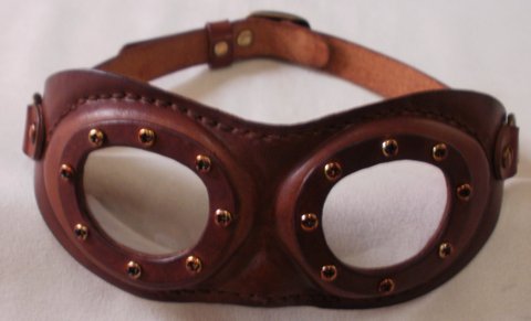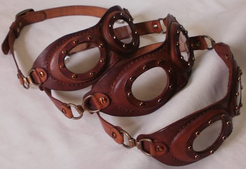 베지터블 가죽을 브라운 투톤 컬러로 천연 염색하여 수작업으로 제작한 핸드메이드 스팀 펑크 디자인 천연 가죽 고글입니다.(마디샤)