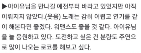아이유와 연기 호흡 맞추고 싶다고 밝힘