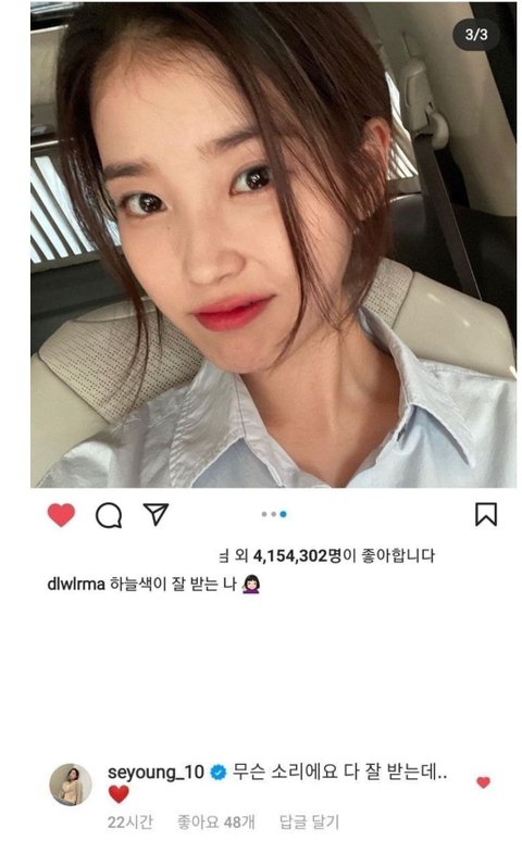 아이유 SNS에 주접 댓글 달고 다님ㅋㅋㅋㅋㅋㅋㅋㅋ 귀여워