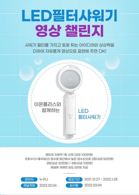 몽트리 LED필터샤워기 챌린지에 여러분의 통통 튀는 아이디어와 상상력을 더해주세요.