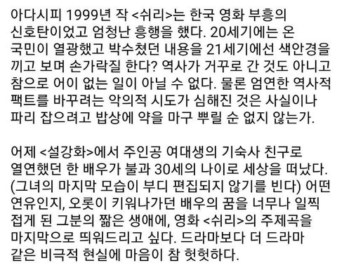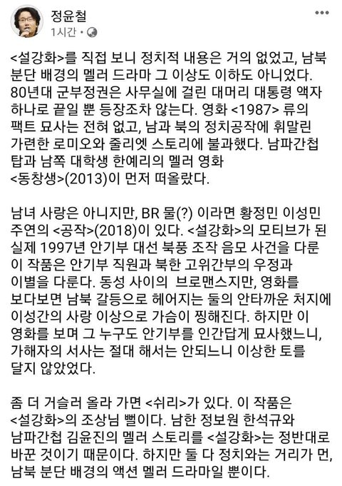 영화 말아톤 감독님이 설강화보고 쓰신 글