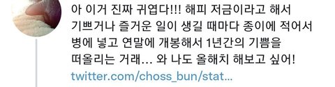 연말에 쪽지 열어보면 -잼동 ㅆ1발 1차 터졋다 -이젠오 그가 남자로 보입니다 어쩌구 -드림 컴백? ㅇㅇ 죽어줄게 이딴거 밖에 없을거같음 그래도 취지는 좋은거 같으니까 너네 해보라고 공유한다리