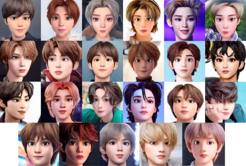 전체적으로 다 누가 누군지 알아볼 수 있을 정도로 비슷비슷한데 쿤이랑 정우는 좀 다르게 나왔고 쇼타로랑 텐은 원래 얼굴이랑 똑같이 생긴듯