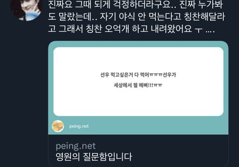 더 먹어도 모자를 판에 실물 본 팬들 선우 다 말랐다고 하는데