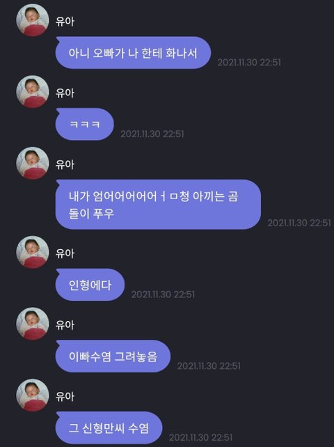 유아는 자기 계정으로 게임했을뿐인데 오빠가 착각해서 화냄