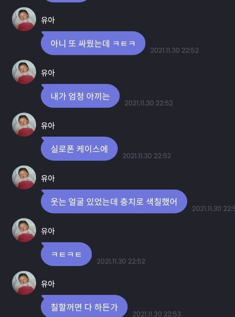 유아가 아끼는 실로폰 케이스에 충치처럼 낙서함