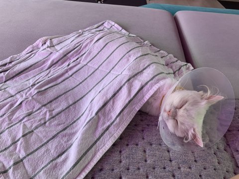 중성화 수술하시고 피곤하신것같아 삶은 행주로