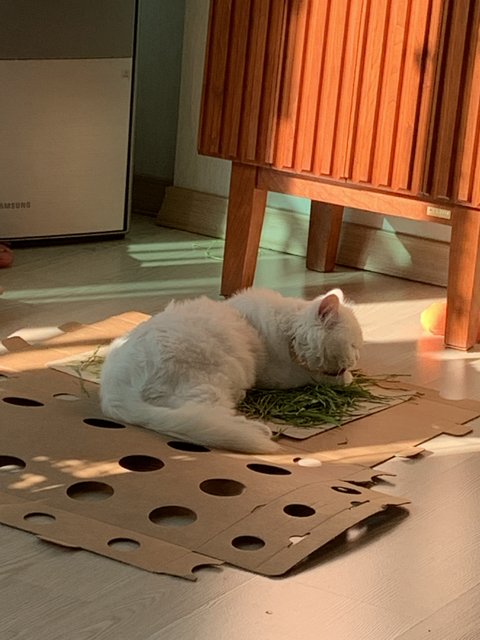 어느정도 자라면 안 자라는데 그때 가위로 잘라서 저렇게 두면 그위에 올라가서 뒹굴뒹굴했어요ㅎㅎ좋나봐요ㅎㅎ