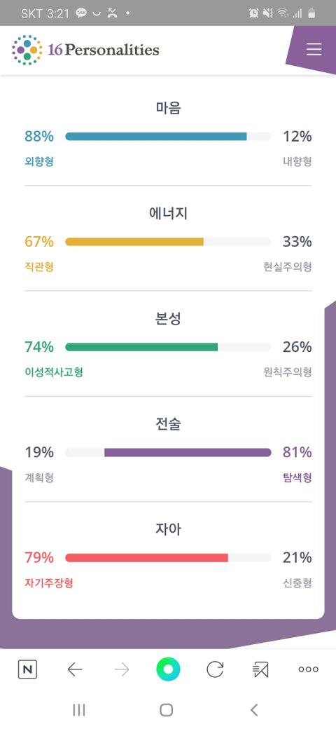 이거 내 mbti 결과인데 내 성격 어떨거같음?