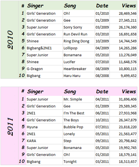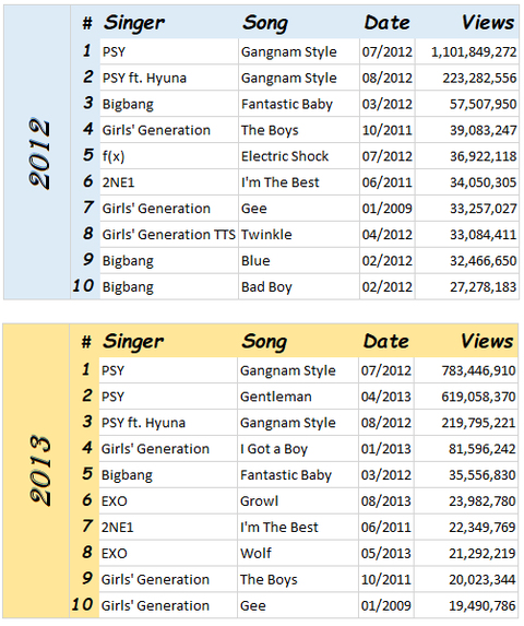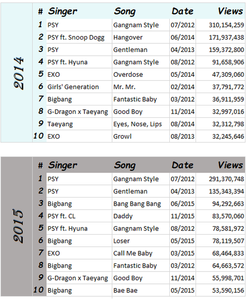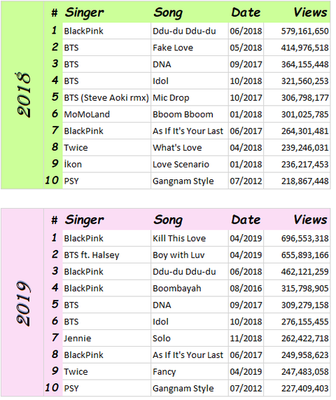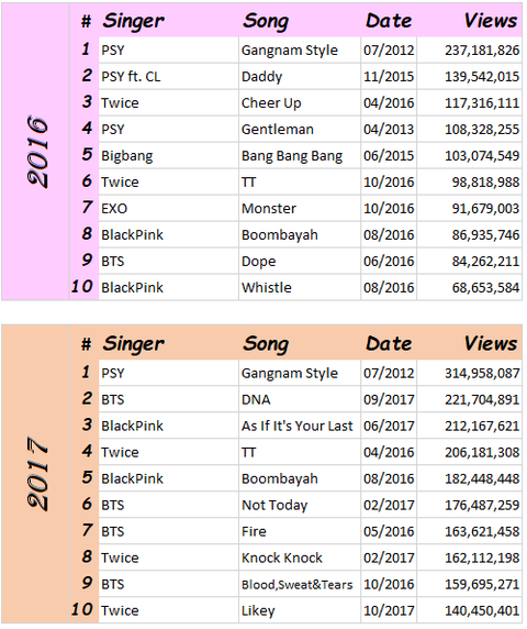 역대 유튜브 최다 조회수 KPOP뮤직비디오 top10