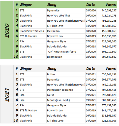 역대 유튜브 최다 조회수 뮤직비디오╋ 최다 조회수 KPOP뮤직비디오 2008~2021