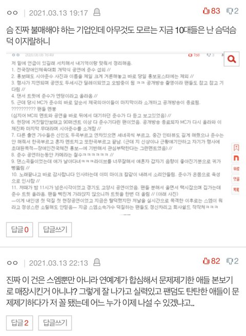 너네가 그렇게까지 덕질하는 소속사가 어떤 소속사인지는 알았으면 좋겠다