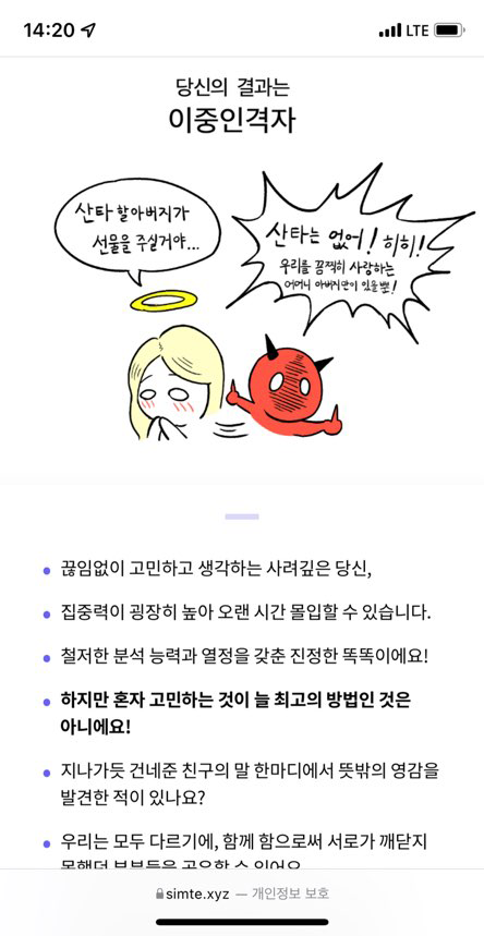 테스트는 그닥 안 정확한데 캐릭터가 쫌 귀엽네용ㅎ