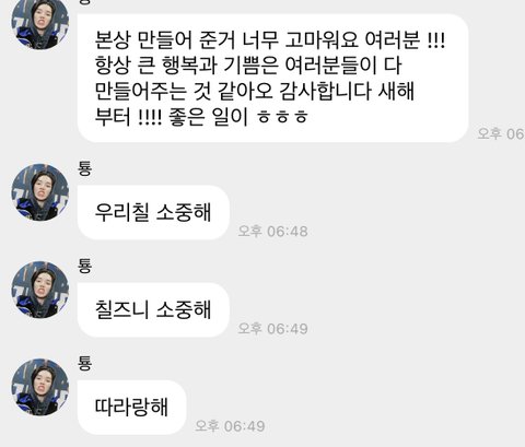 우리칠 칠즈니라는 말 울애들 입에서 한 거 나 첨 봐