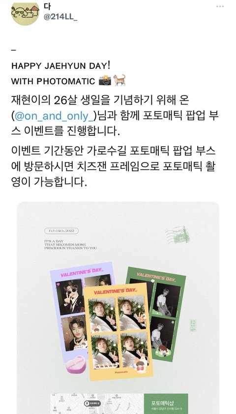 재현이 생일 이벤트로 가로수길 포토매틱 부스에서 치즈잰 프레임으로 찍을 수 있대 나 대신 많이 가줘라…