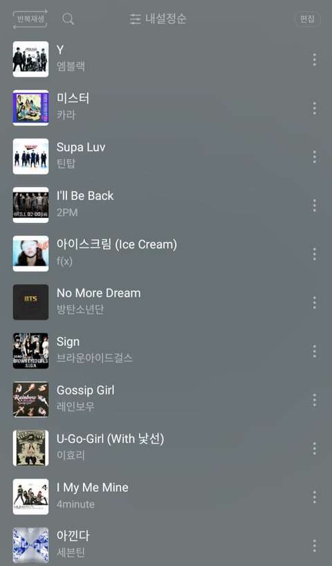 알바하다보면 컴퓨터에서 노래나오잖아. 거기 목록이 여러가지 있거든? 케이팝 발라드 팝송 등등. 근데 거기에 "숨듣명 차트" 라고 있거든? 거기에 ㄹㅇ 향수돋는 2000 2010년대 노래만 있어ㅋㅋㅋㅋㅋ 이제 출근하자마자 숨듣명 목록부터 재생함ㅋㅋㅋ 이제 내 공간은 2010년대로 돌아간 느낌?ㅇㅇ
