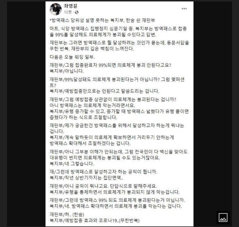 -재판부: 그런데 방역패스로 달성하고자 하는 공익이 뭡니까.