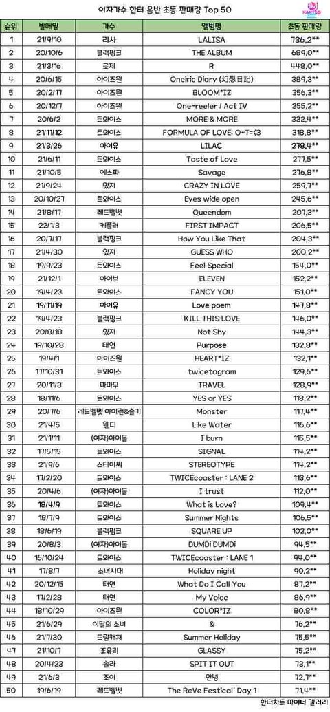 역대 여돌 초동 15위 여돌 데뷔초동 1위 달성 케플러 축하해~~~~~