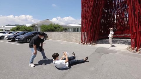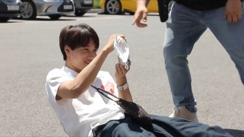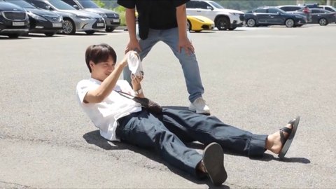 친구 인생샷을 위해 한여름 뜨거운 아스팔트에 드러눕는 연예인