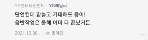 하반기에 정규앨범 딱 나오면 팬들이 좋긴 하지