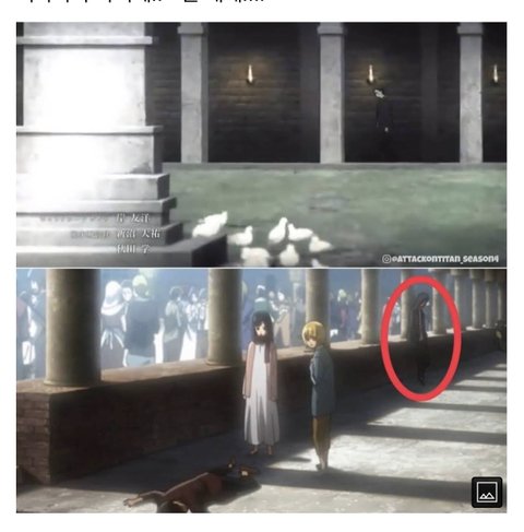 그 여기에서 후드쓴남자가 에렌이라눈 짤이 또 갑자기 트윗타나 유튜브에 많이 뜨는데 아직 이건 공식 아니지ㅠㅠ?? 또 댓글보니까 드로스트구에서 에렌이 미카사한테 주먹질할때 술통 두개 어쩌고 하는데 이건 뭐야???
