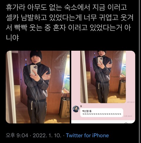 이태용 너무 ㄱ여움 혼자 숙소에서 저거 찍어서 버블보냄