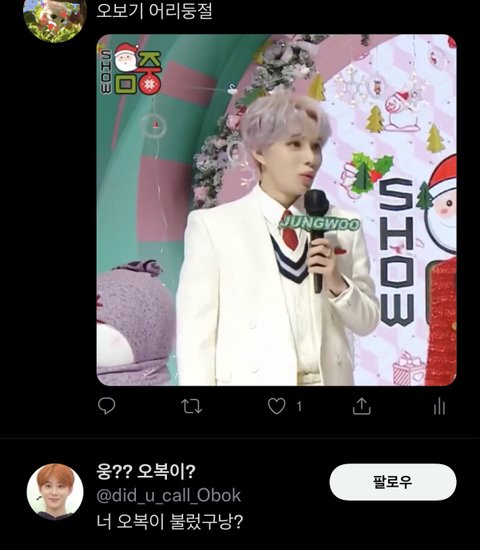 트윗에 오복이 쓰면 웅?? 오복이? 계정이 와서 맘찍 눌러주심ㅋㅋㅋㅋㅋㅋㅋㅋㅋㅋㅋㅋ댕귀여워 컨셉 진짜 졸귀야