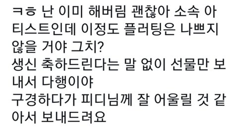 그래서 생일 아니라는 거 알았을 때 선물만 보낸 걸 다행으로 생각함