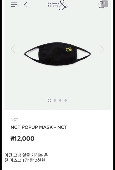 3️⃣ 엔시티 마스크 : 장당 1만2천원 그냥 천마스크, 필터나 아무 기능없음