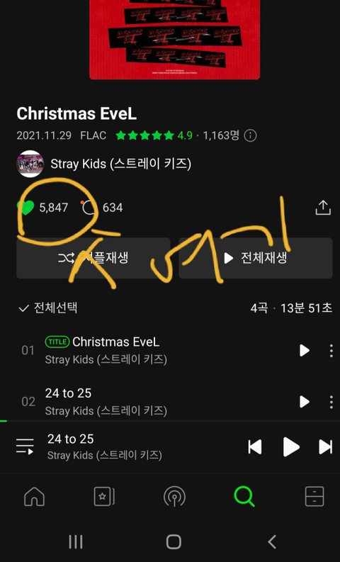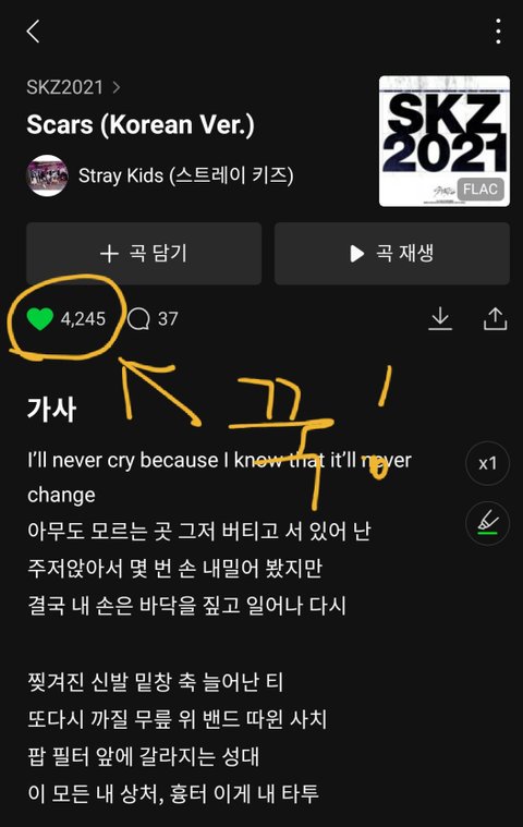 한곡마다 누를 수도 있고 이건 앨범에 주는 하뚜야