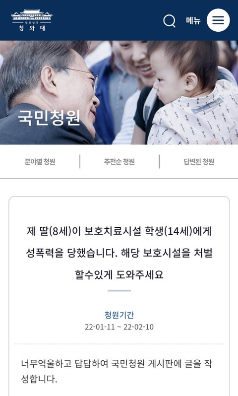 해당내용 국민청원입니다.